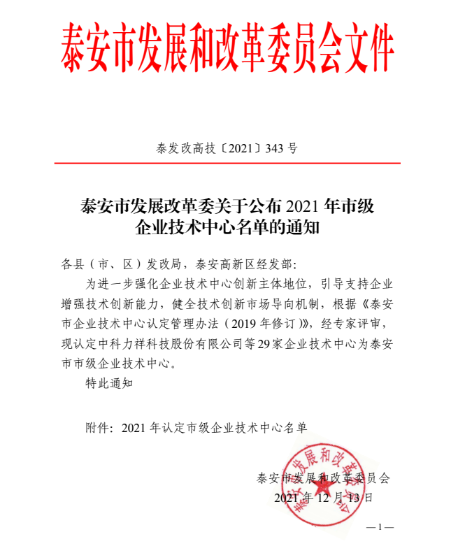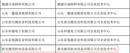 2021年12月13日泰安市發(fā)展和改革委員會公布市級企業(yè)技術(shù)名單,很榮幸泰安德美機電設(shè)備有限公司入圍泰安市市級企業(yè)技術(shù)。
