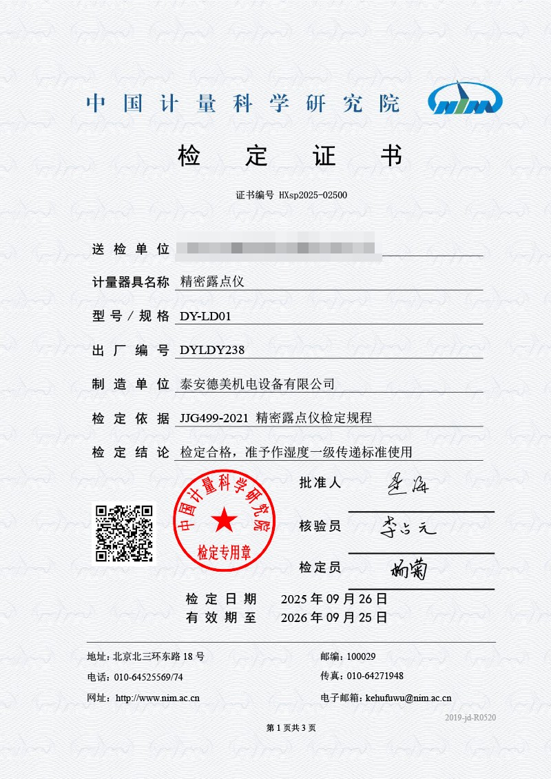 露點儀檢定證書 2025-9-29 本文被閱讀 1838 次