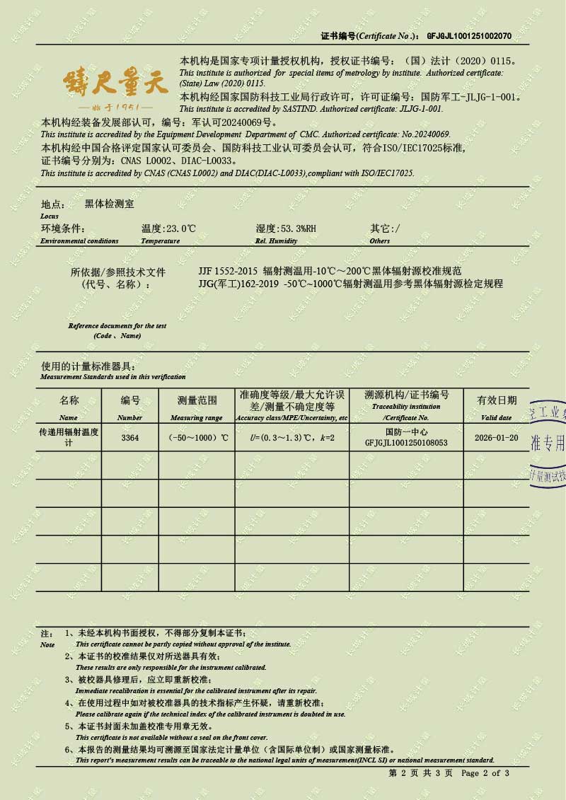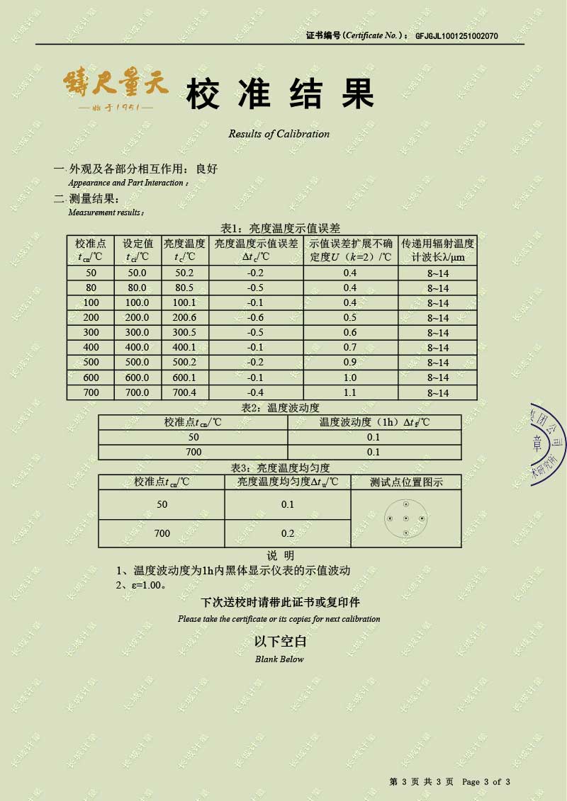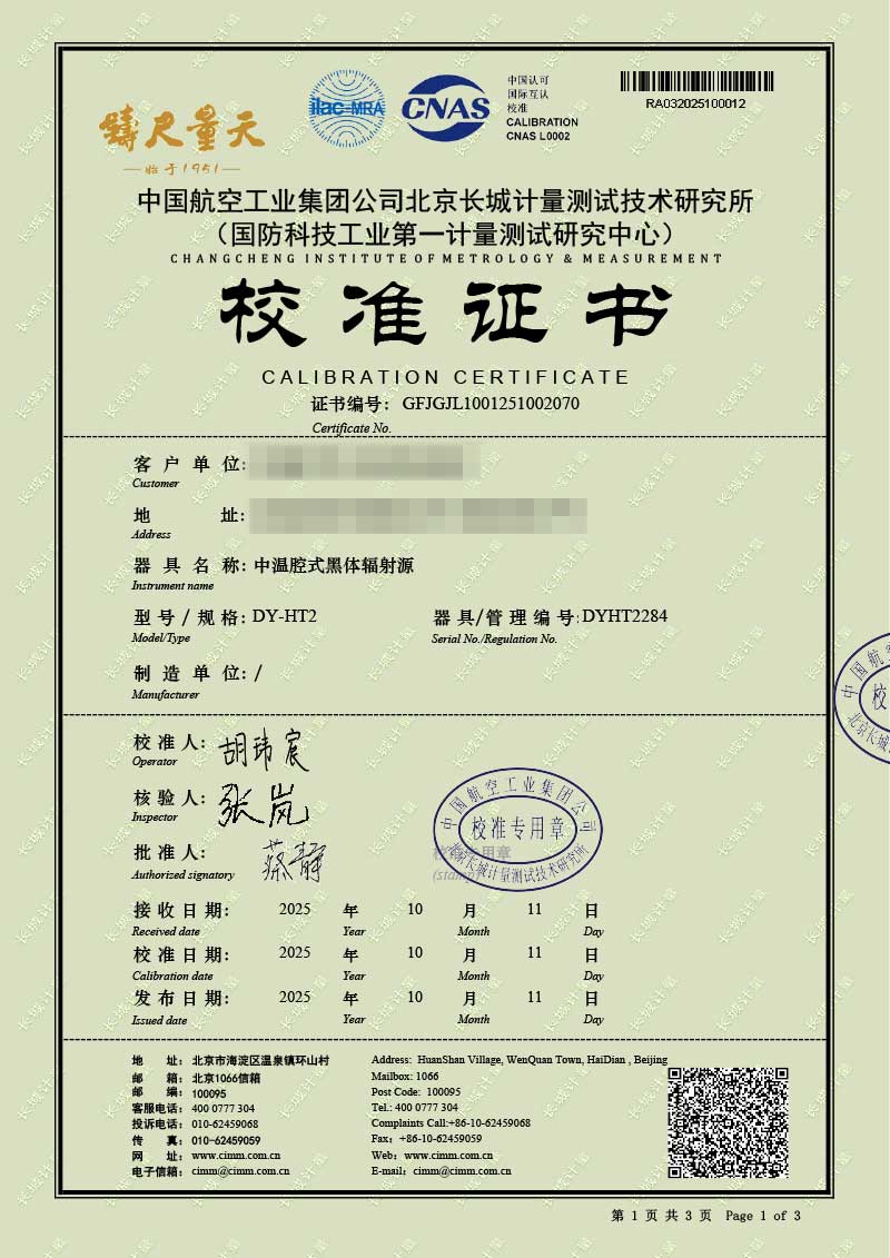 | 上一條:高溫腔式黑體輻射源(700-1600℃)校準(zhǔn)證書 | 下一條: DY-HT1D-100C超低溫黑體輻射源 |