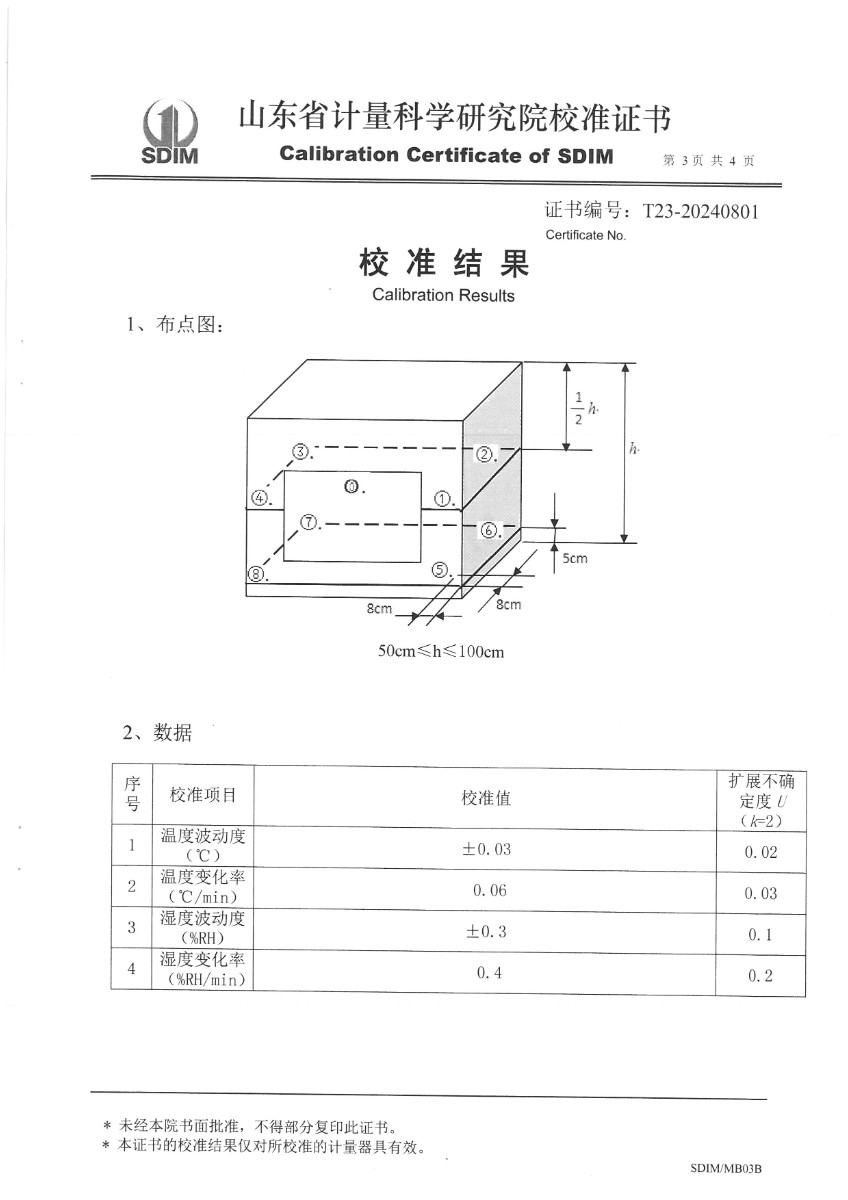 溫濕度檢定箱校準(zhǔn)證書