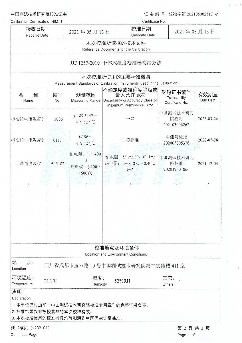 | 上一條:龍旗電子(惠州)有限公司便攜式溫濕度檢定箱 | 下一條:冷鏡式露點(diǎn)儀校準(zhǔn)證書 |
