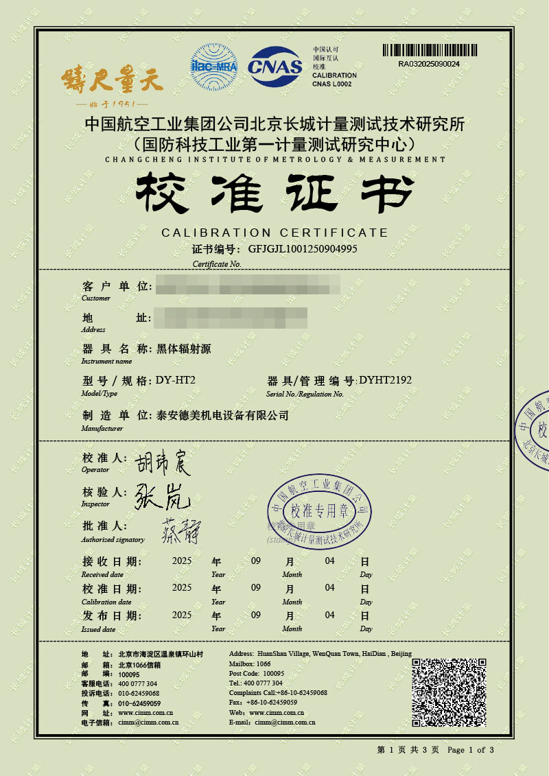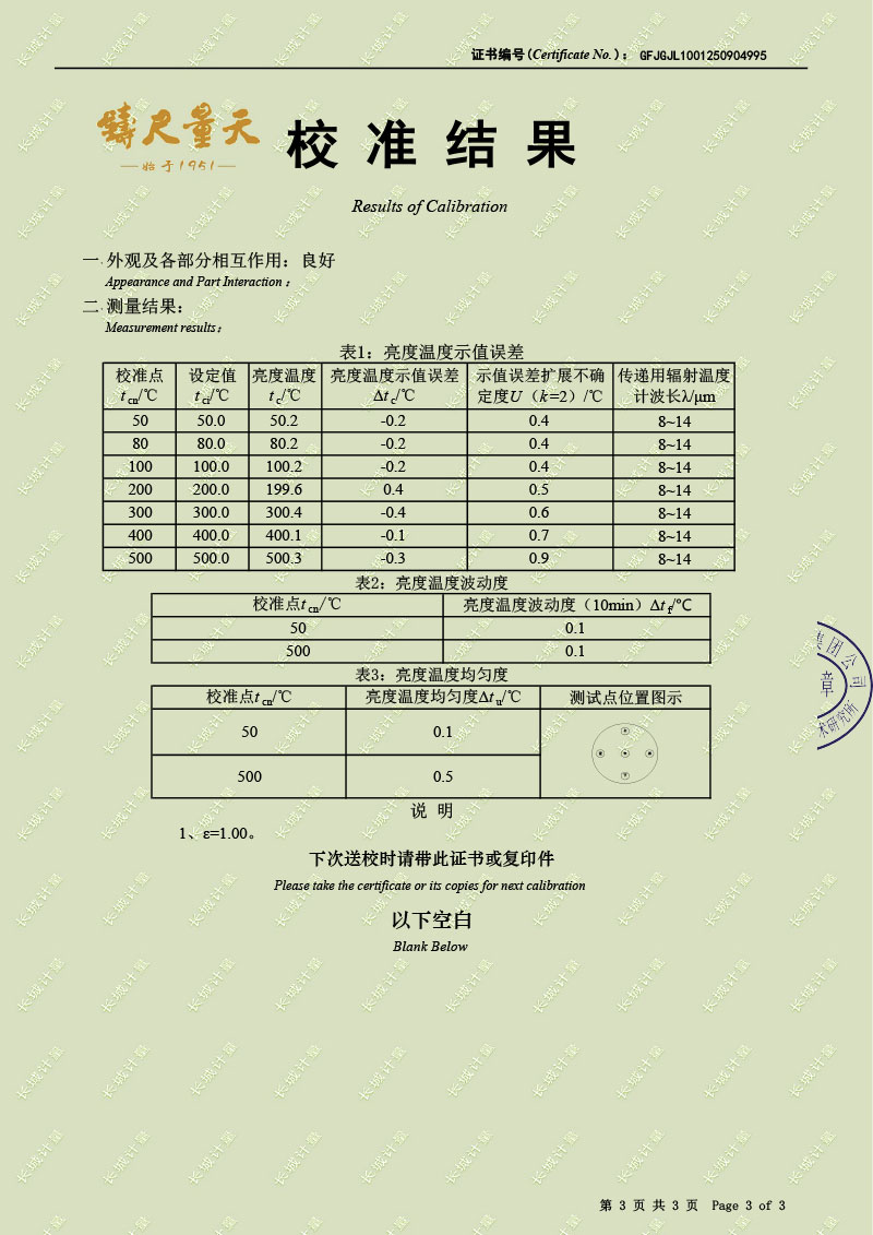 | 上一條:黑體輻射源(-15-80℃)校準(zhǔn)證書 | 下一條:冷鏡式露點(diǎn)儀校準(zhǔn)證書 |